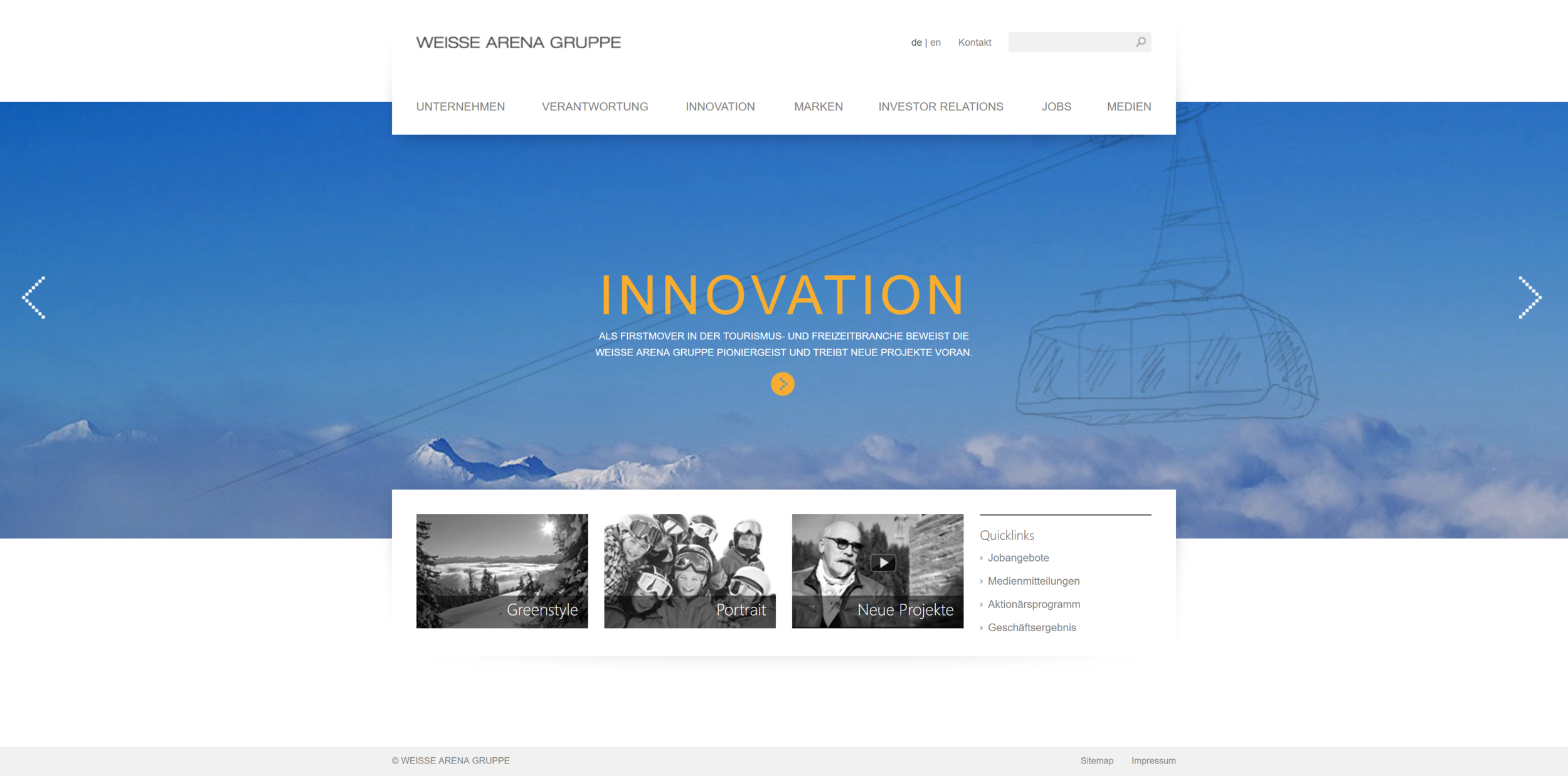 The company and its respective brands have grown impressively over the past years into an innovative, highly digitized mountain destination. This made it all the more important for us to build a site that had access to all the dry information and numbers of a corporate site while representing the youthful and innovative culture of the company.